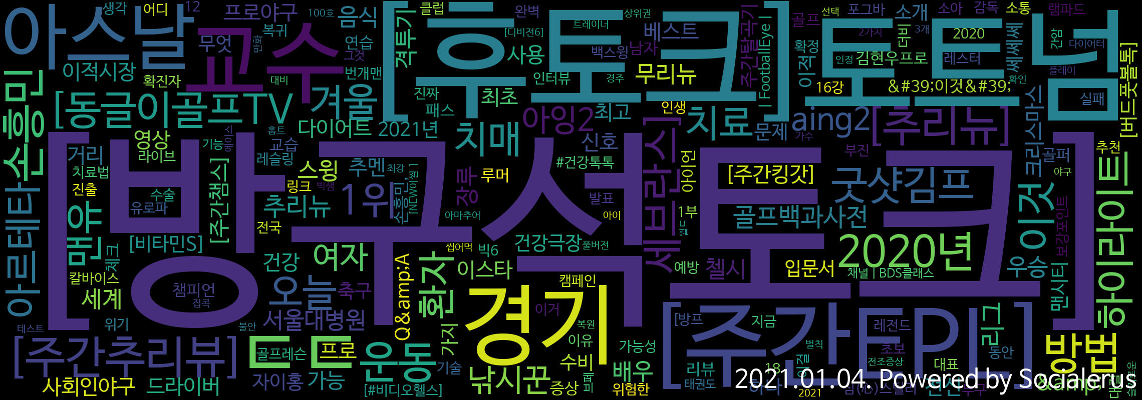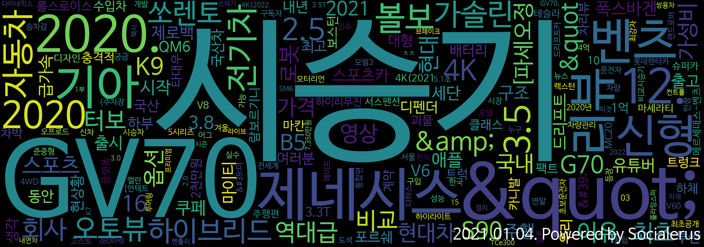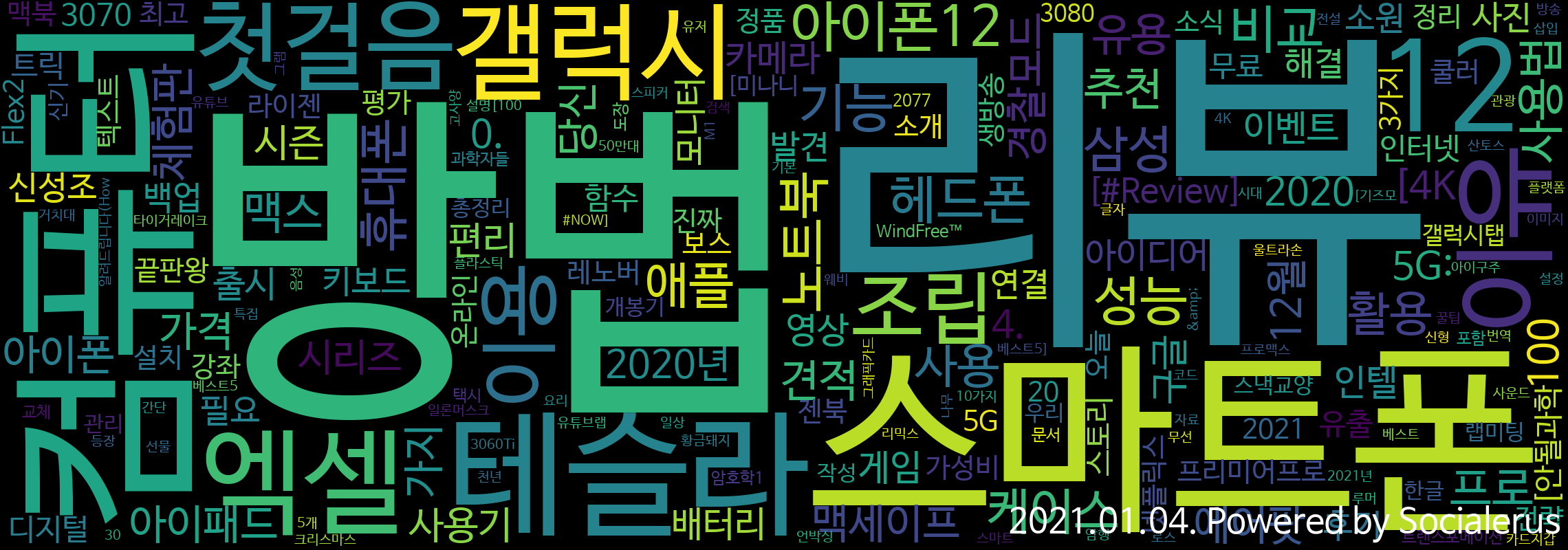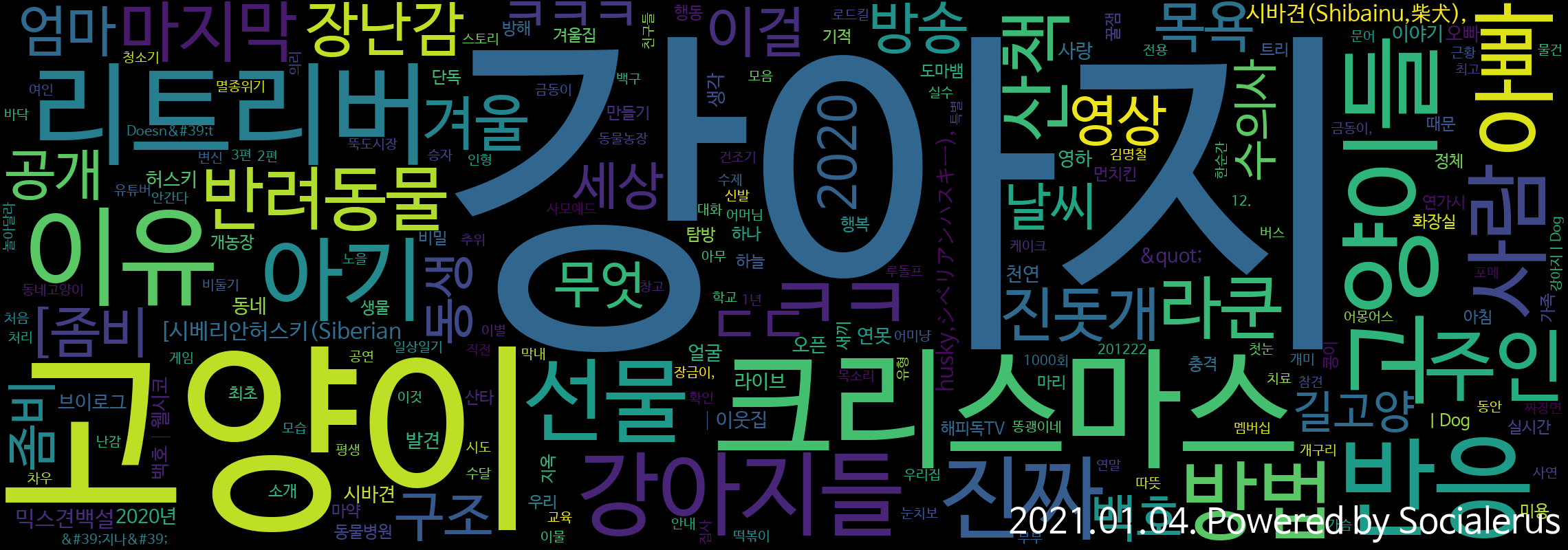 바로 최신 영상의 타이틀 단어를 분석해 최신 트렌드를 추출한 뒤, 워드 클라우드로 제공해 드리는 서비스입니다. 간략히 요약하면,