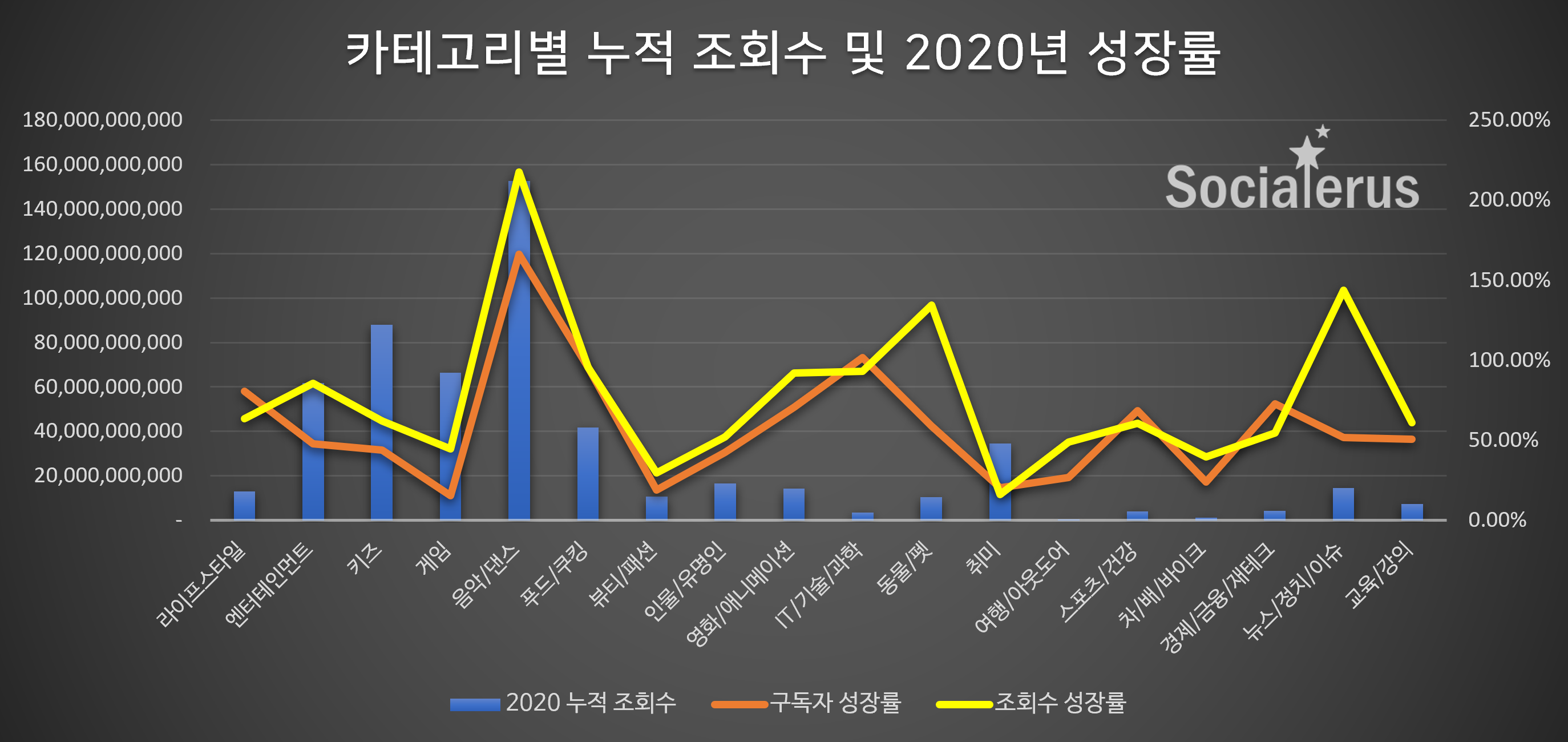 2020 카테고리별 구독자/조회수 성장