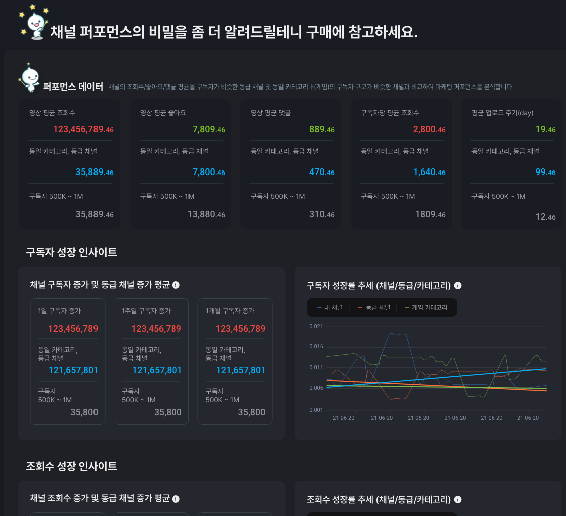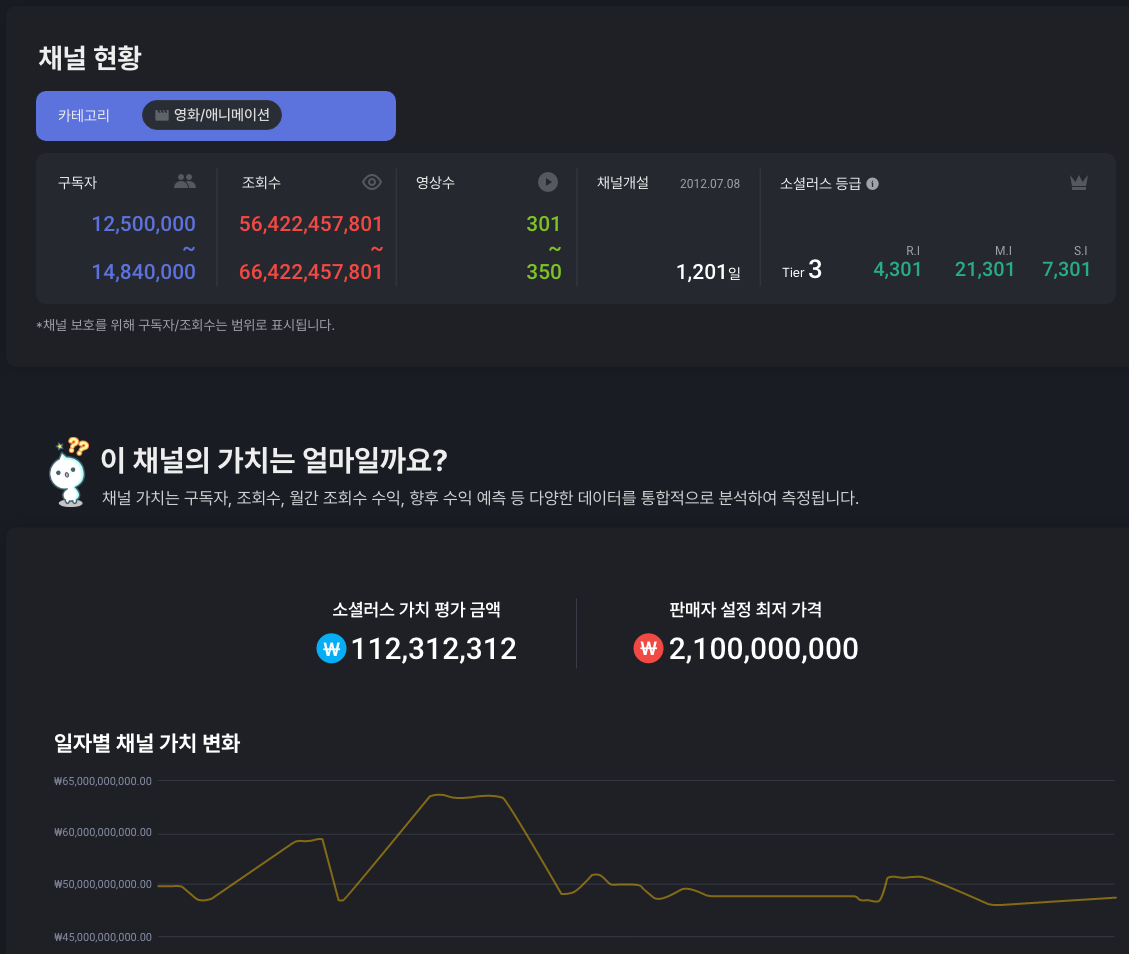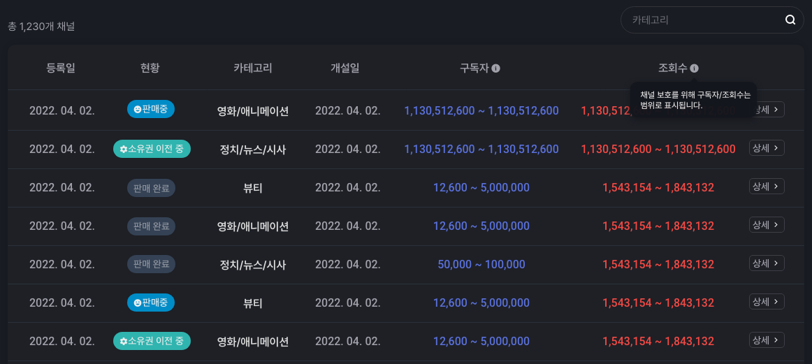 5년간의 데이터를 기반으로 유튜브 채널 거래소를 오픈하였습니다.