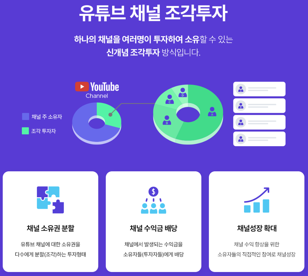 나의 시청/공유가 내 소유권의 가치를 성장시키시키고, 조각투자자가 내 채널을 더욱 열심히 성장시키는 마법, 지금 바로 경험해 보세요.