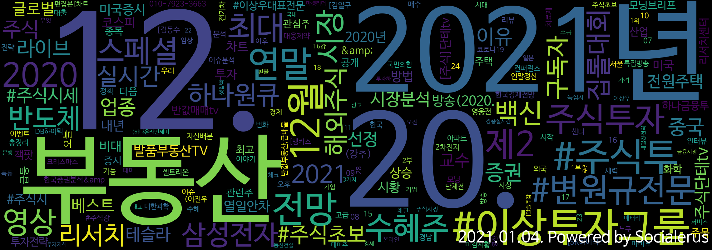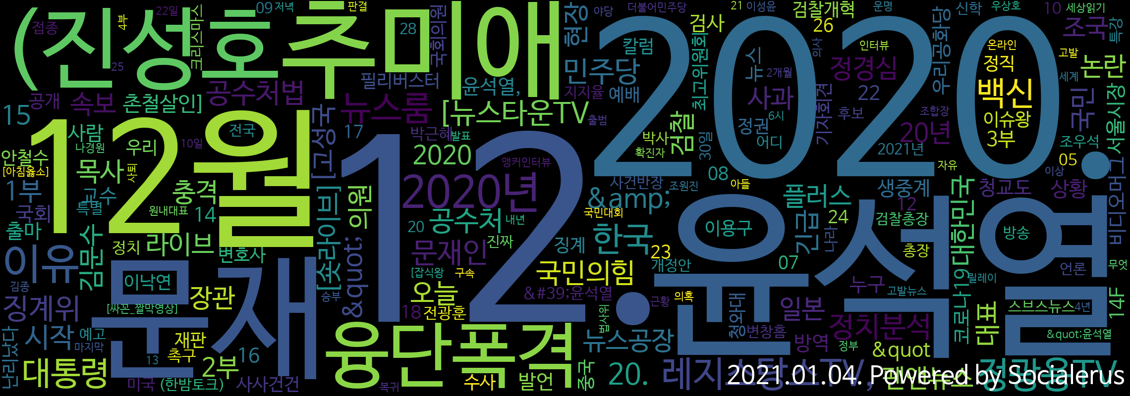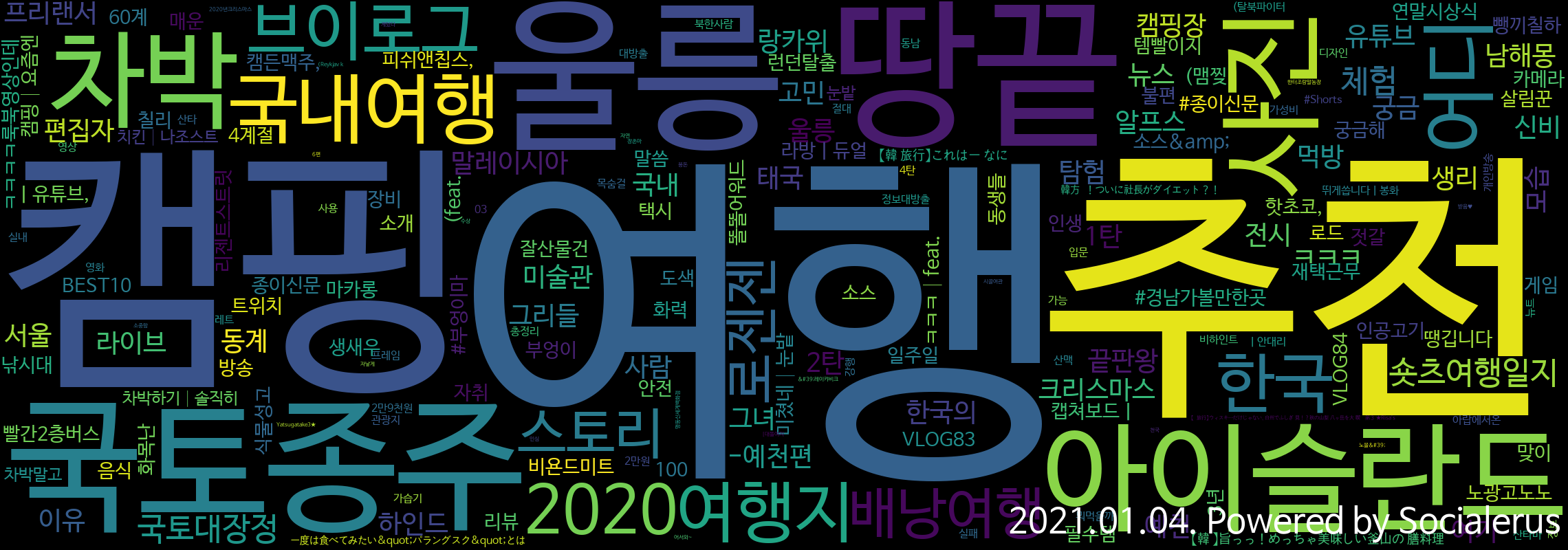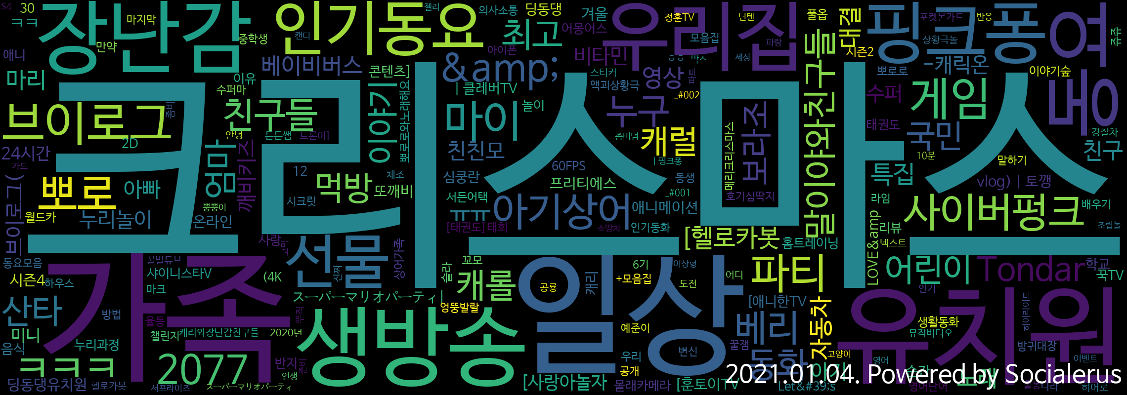 바로 최신 영상의 타이틀 단어를 분석해 최신 트렌드를 추출한 뒤, 워드 클라우드로 제공해 드리는 서비스입니다. 간략히 요약하면,