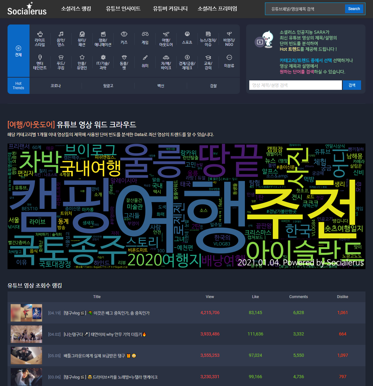 (사이트 이동은 >> 유튜브 빅데이터 영상 랭킹 및 트렌드 소셜러스)