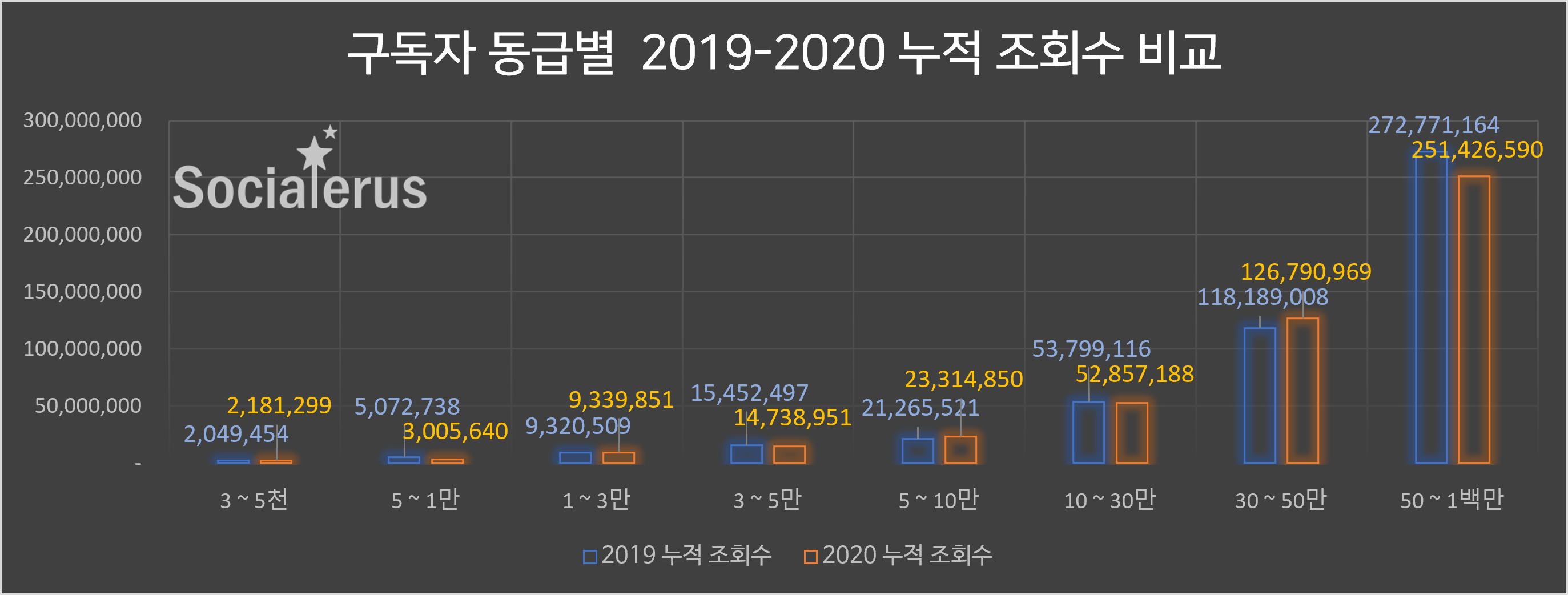 2019-2020 구독자 동급 채널 조회수 비교
